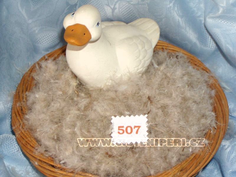 Peří typ 507Husí peří / ručně drané / prach šedý, krátký / 75-80% Použití: spací pytle |